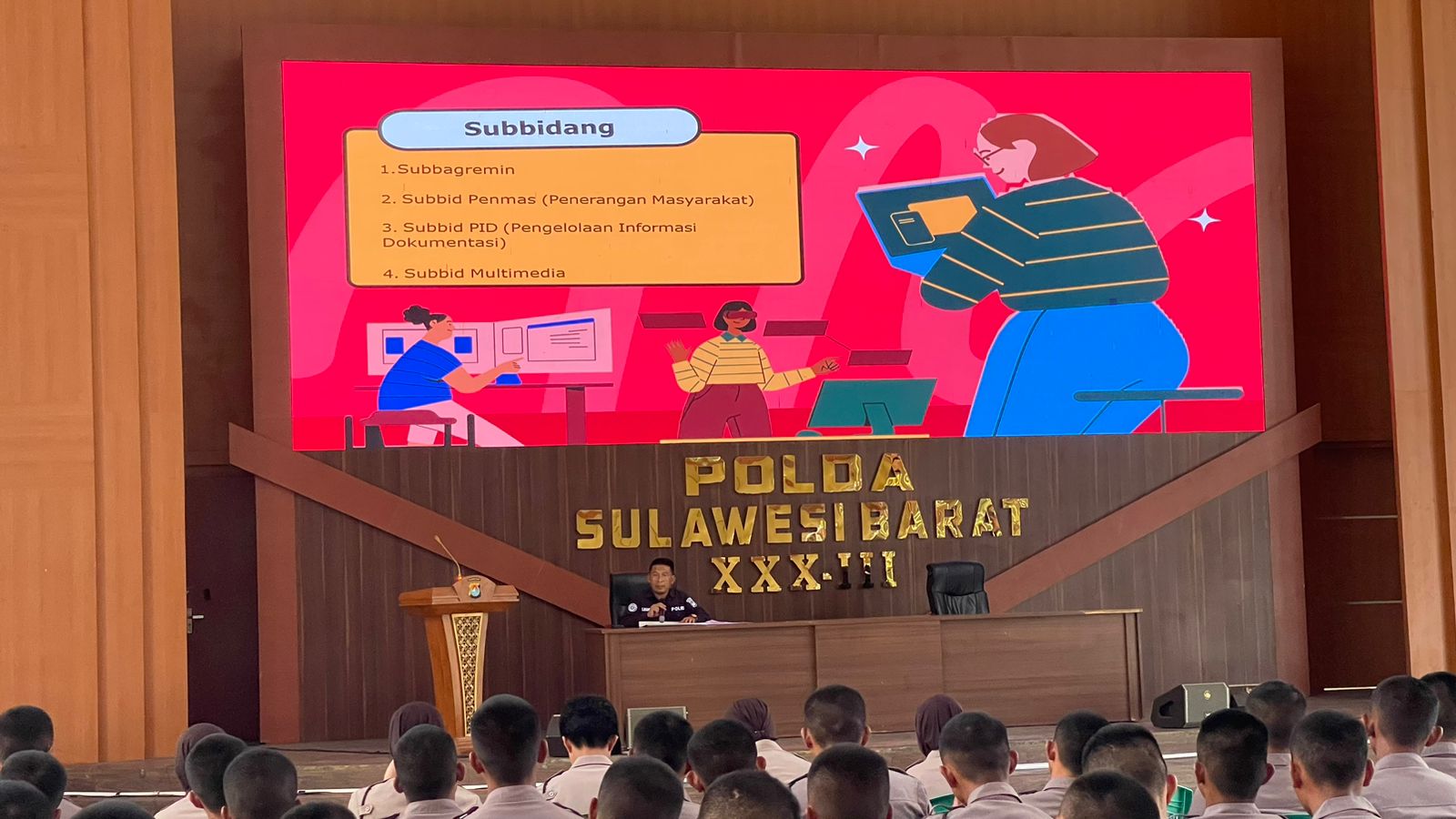 Garudapos.id_Polda Sulbar – Menjadi pemateri dalam rangka peningkatan wawasan bintara remaja Polda Sulbar untuk mendukung maksimalisasi pelaksanaan tugas dan menjaga citra Polri di tengah masyarakat, Kepala Bidang Hubungan Masyarakat (Kabid Humas) Kombes Pol Slamet Wahyudi mengenalkan fungsi Humas Polri serta strategi humas menjaga kamtibmas lewat media sosial.