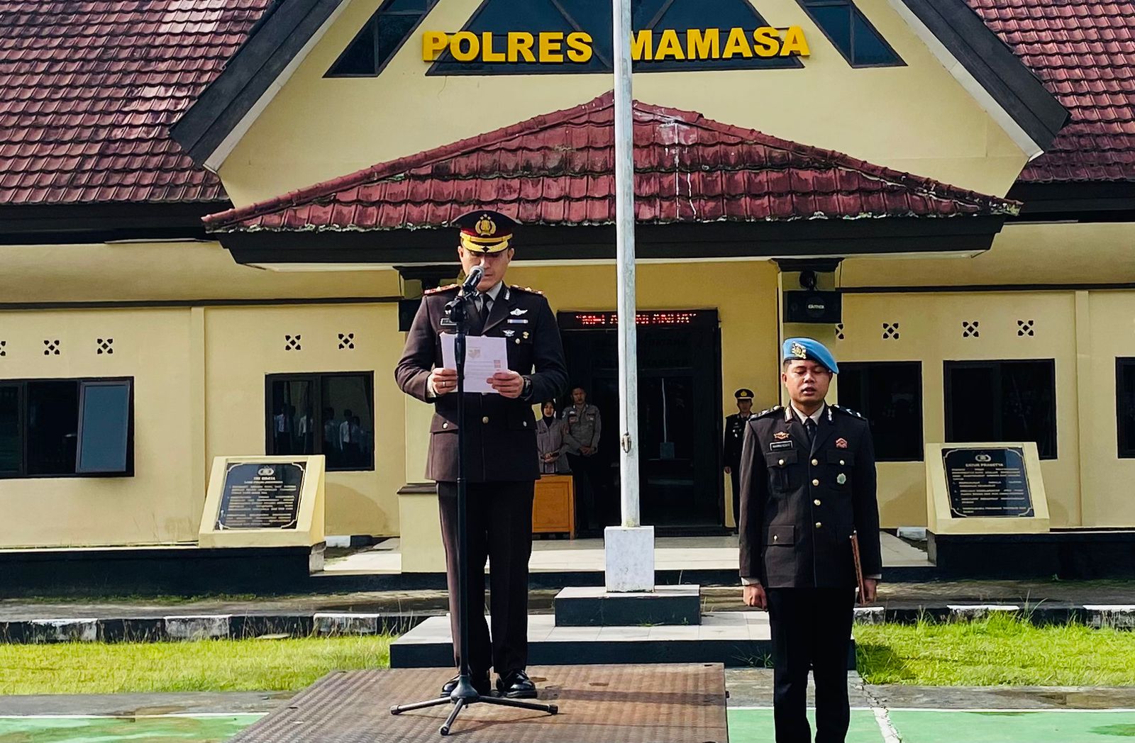 Bertindak sebagai Inspektur Upacara adalah Wakil Kepala Kepolisian Resor (Wakapolres) Mamasa, Kompol Restu Indra Pamungkas, sementara pemimpin upacara dipercayakan kepada Ipda Muhammad Alfin. Upacara ini diikuti oleh seluruh Pejabat Utama (PJU) Polres Mamasa serta gabungan staf dari berbagai satuan fungsi di lingkungan Polres Mamasa.