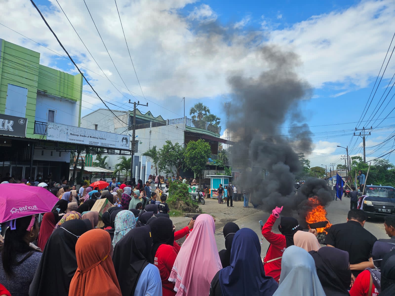 Aksi unjuk rasa atau demonstrasi dati ratusan warga dan mahasiswa tersebut dilaksanakan di Jalan Poros Galesong, Sabtu, 14/06/2025.