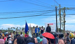 Dalam aksinya, mereka menyuarakan penolakan terhadap kehadiran PT.Rachita yang ingin membangun perumahan.