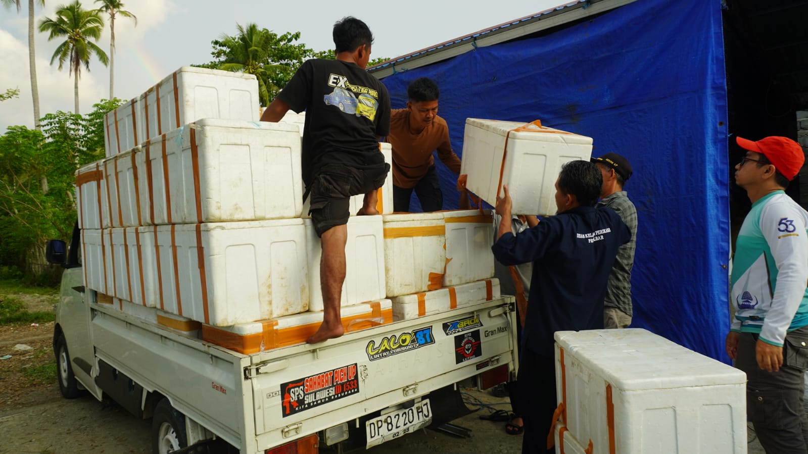 Kegiatan ini dilaksanakan hingga larut malam, membuktikan komitmen DKP Sulbar dalam memastikan bantuan tepat waktu demi menekan risiko kematian bibit akibat stres atau keterlambatan distribusi.