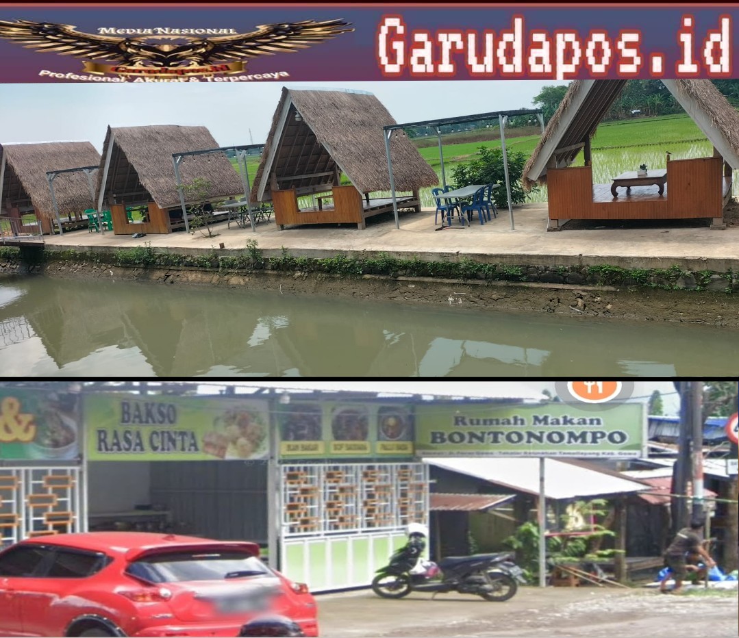Warung makan Bontonompo yang memanfaatkan tanggul perbatasan antara persawahan dan irigasi kini menjadi sorotan tajam media. Warung yang dikenal dengan menu Bakso Cinta, Konro, dan Kikil ini diduga tidak mengantongi izin pemanfaatan fasilitas umum dan melanggar aturan tata ruang dan lingkungan.