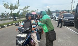 Garudapos.id|Polda Sulbar – Ditlantas Polda Sulawesi Barat terus berburu berkah Ramadan melalui kegiatan bagi-bagi takjil menjelang berbuka puasa. Kegiatan tersebut sekaligus dirangkaikan dengan penyuluhan keselamatan lalu lintas kepada masyarakat demi terwujudnya kamseltibcarlantas.