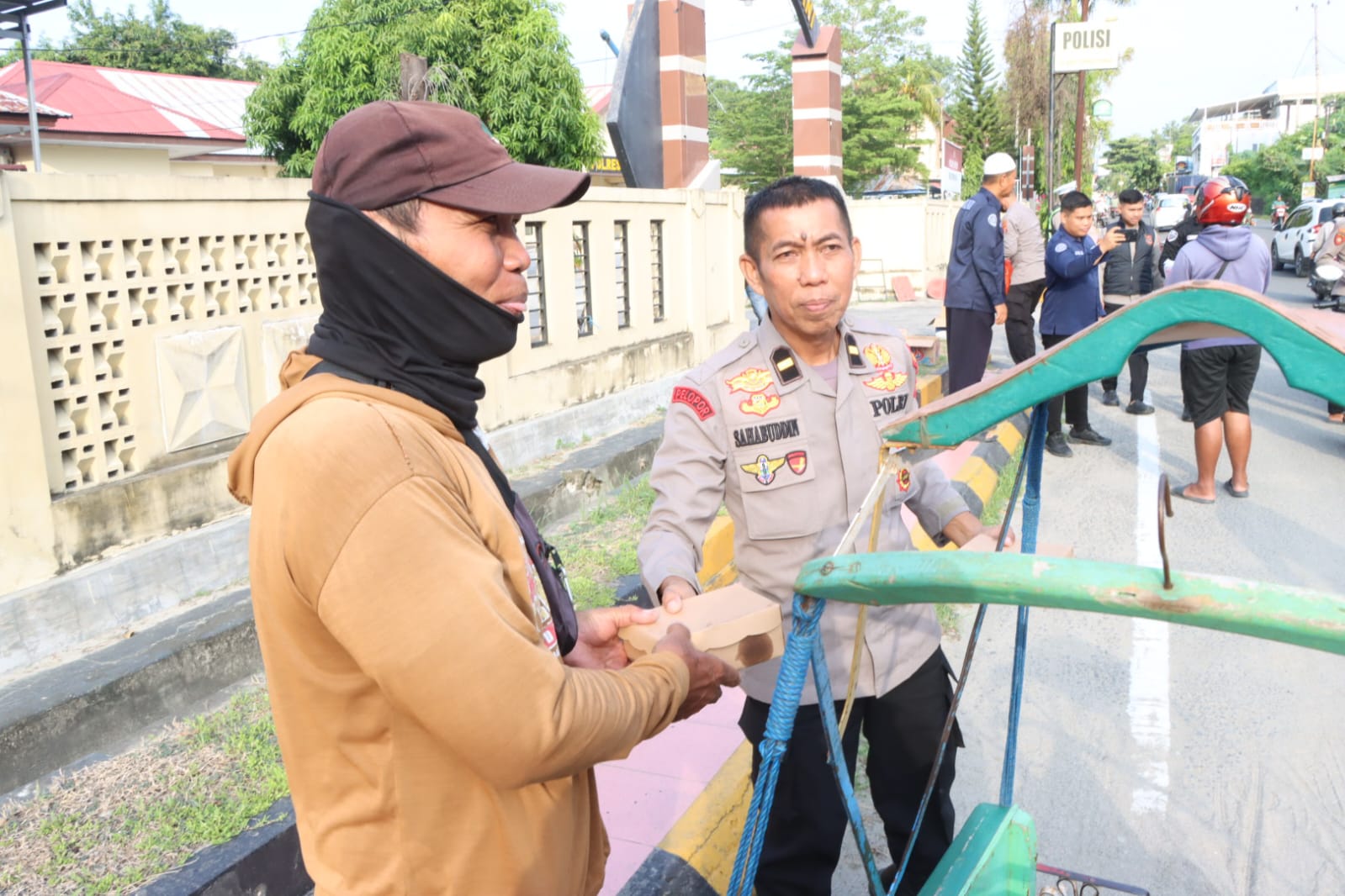 Menjelang waktu berbuka puasa, sejumlah personel Polres Majene turun langsung ke tepi jalan untuk membagikan paket takjil kepada para pengendara yang melintas. Mulai dari pengendara roda dua, roda empat hingga masyarakat yang sedang beraktivitas di sekitar lokasi tampak menerima takjil dengan penuh antusias.