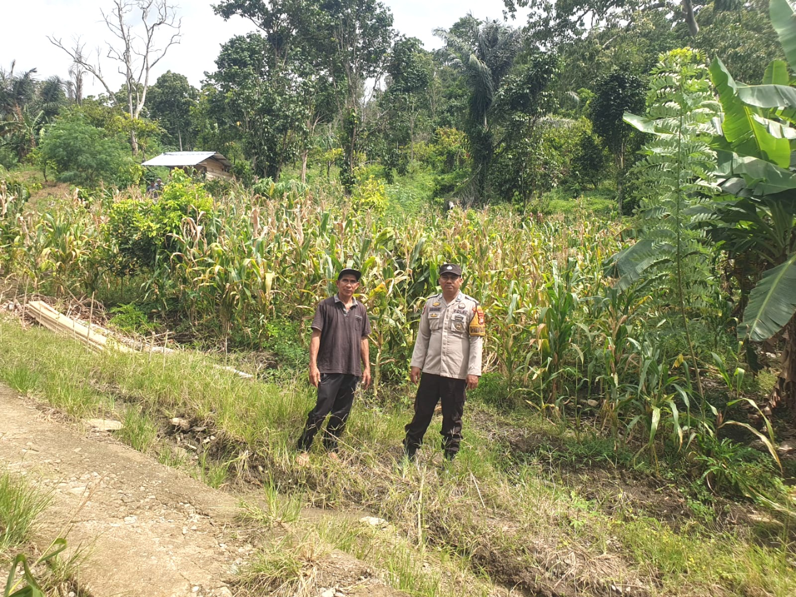 Garudapos.id|Polres Majene – Dalam upaya mendukung program ketahanan pangan nasional, Bhabinkamtibmas Polsek Sendana Polres Majene, Brigpol Syamsul Rahmat Naba, turun langsung ke wilayah binaannya untuk memantau perkembangan tanaman jagung milik warga di Desa Tammeroddo Utara, Kecamatan Tammeroddo Sendana, Kamis (19/3/26).
