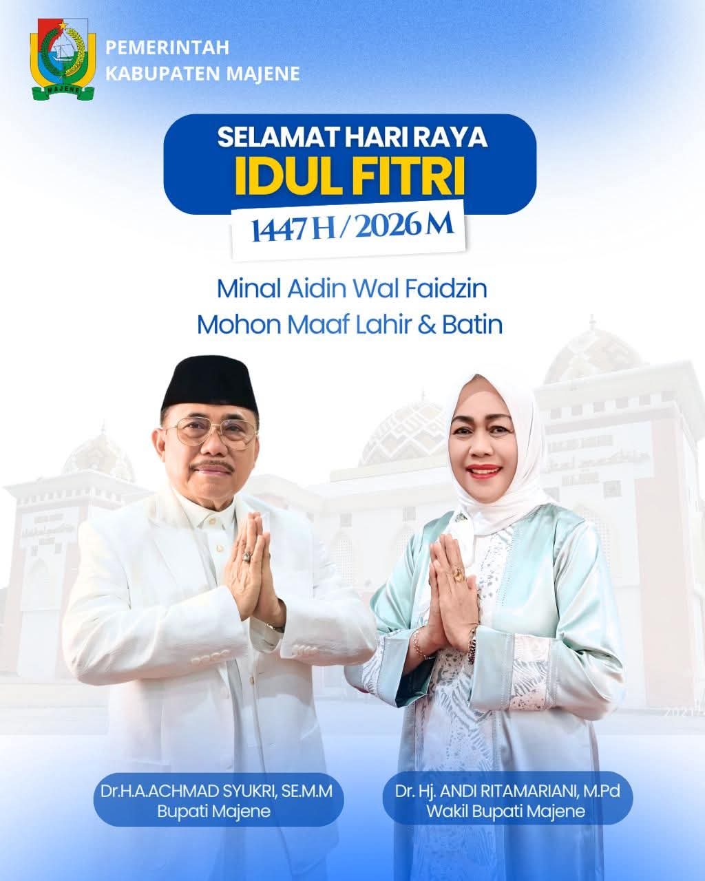 “Atas nama Pemerintah Kabupaten Majene, saya mengucapkan Selamat Hari Raya Idul Fitri 1447 Hijriah. Minal aidin wal faidzin, mohon maaf lahir dan batin,” tutupnya.