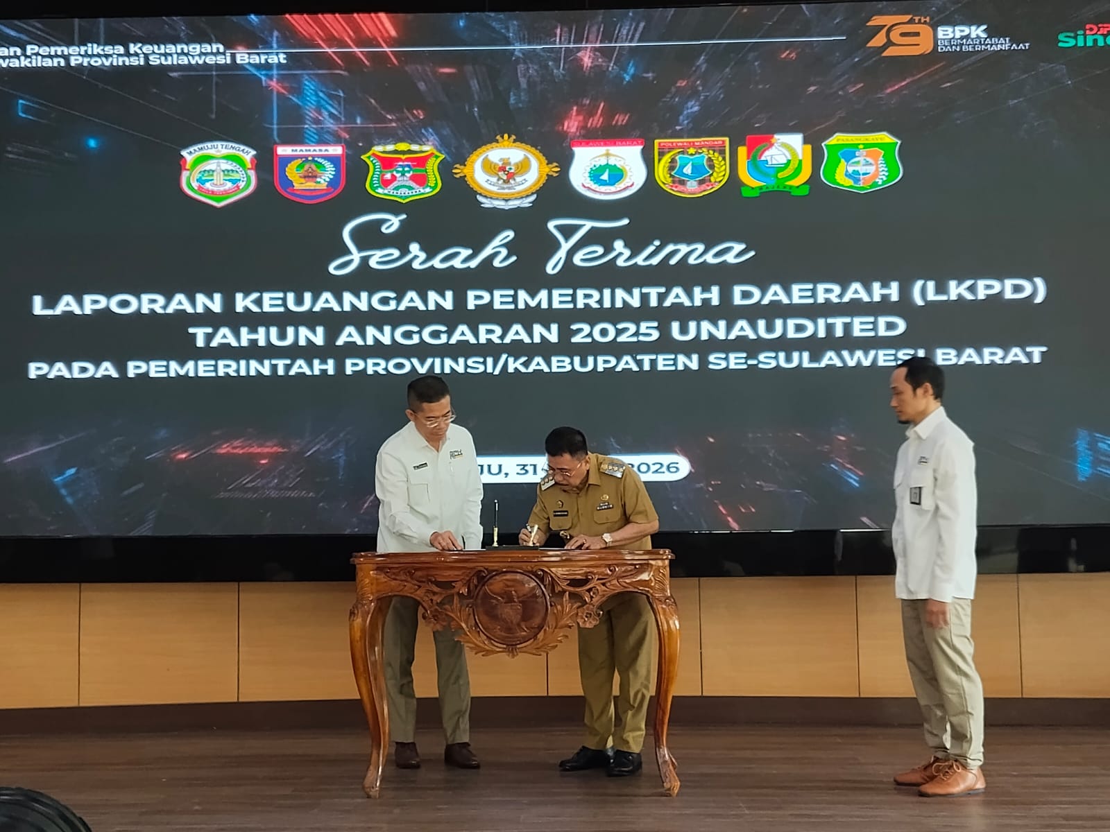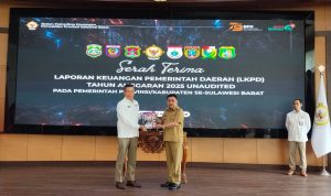Penyerahan dilakukan secara serentak bersama Pemerintah Provinsi dan Kabupaten se-Sulawesi Barat kepada jajaran pimpinan BPK RI Perwakilan Sulbar.
