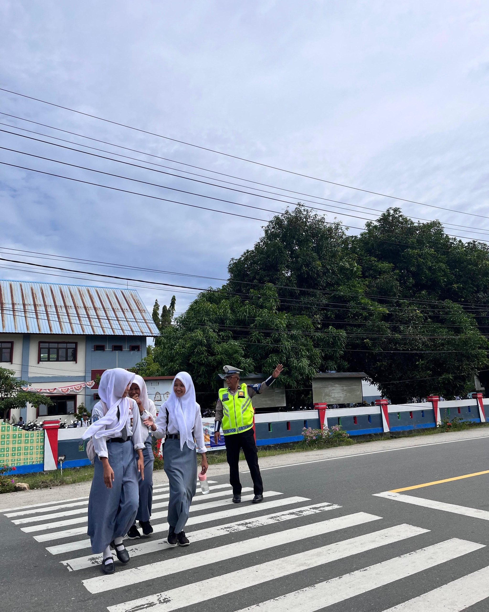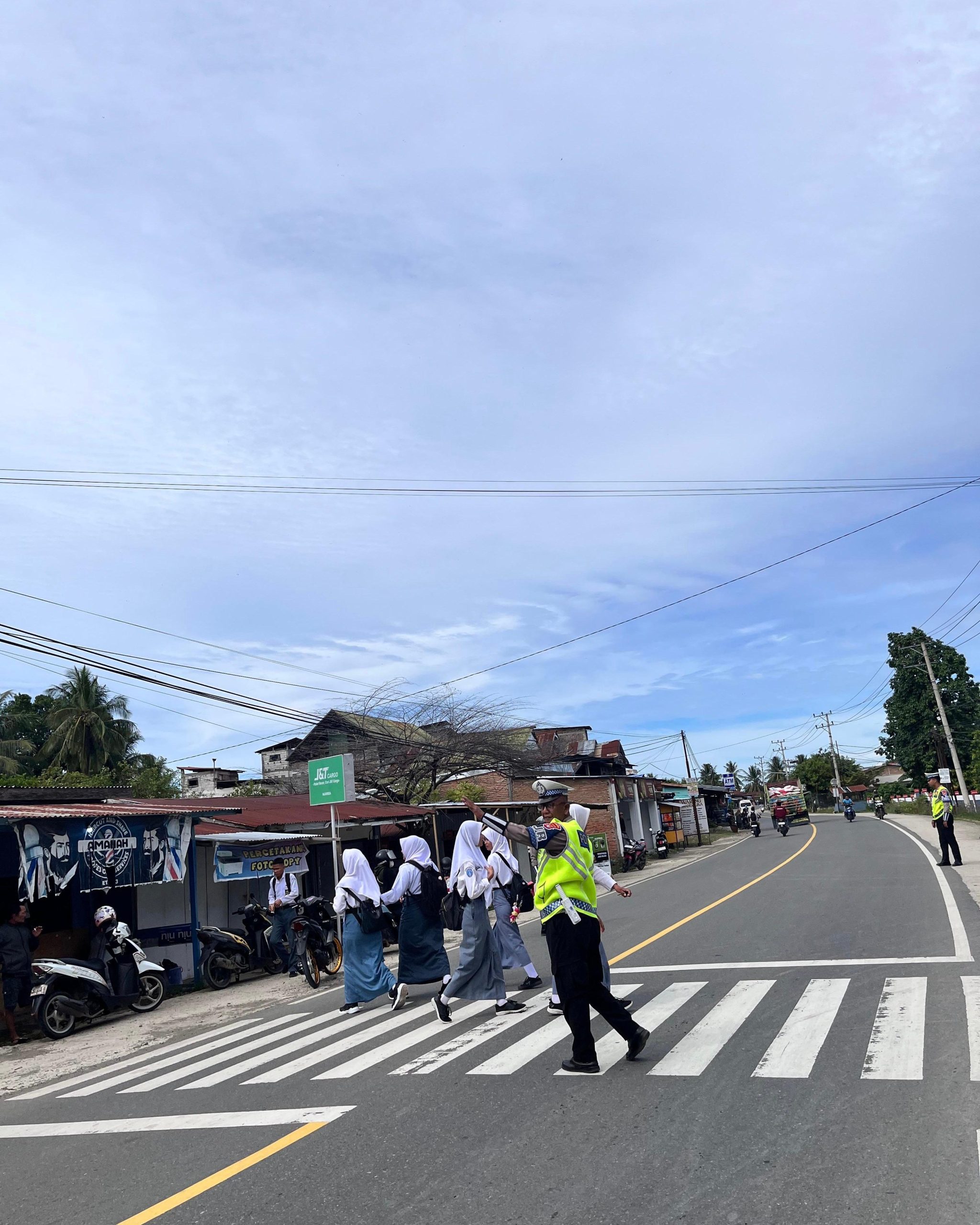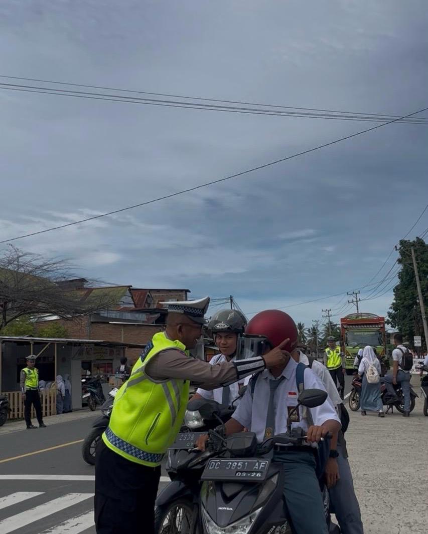 Tidak hanya fokus mengatur kendaraan dan membantu para siswa menyebran jalan, personel PJR juga aktif memberikan pendekatan persuasif berupa teguran dan edukasi langsung kepada para siswa yang menggunakan sepeda motor.