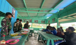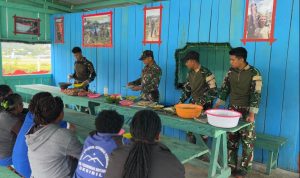 Garudapos.id|Oksibil, Pegunungan Bintang — Pos Kotis Satgas Yonif 751/Vira Jaya Sakti (VJS) melaksanakan kegiatan pembinaan teritorial dengan mengundang ibu-ibu di sekitar pos untuk mengikuti pelatihan pengolahan ubi menjadi sushi. Kegiatan ini menjadi salah satu inovasi baru yang diperkenalkan prajurit TNI kepada masyarakat Pegunungan Bintang, khususnya di wilayah Oksibil. (Rabu,8/4/2026).