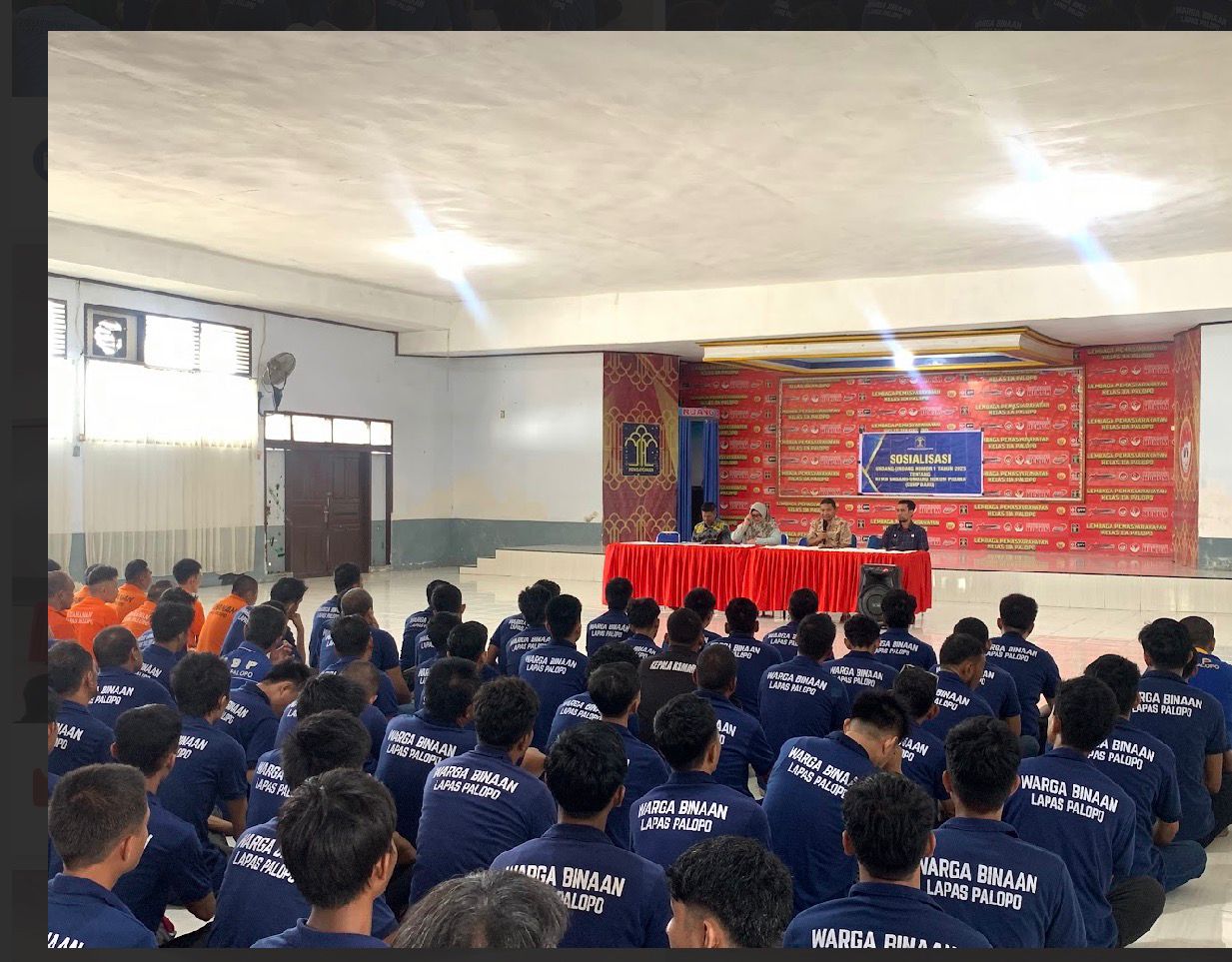 Palopo, 17 April 2026 — Lembaga Pemasyarakatan Kelas IIA Palopo menggelar kegiatan sosialisasi Undang-Undang Nomor 1 Tahun 2023 tentang Kitab Undang-Undang Hukum Pidana (KUHP Baru) yang bertempat di Aula Lapas Palopo, Jumat (17/04). Kegiatan ini diikuti oleh seluruh warga binaan pemasyarakatan dan tahanan sebagai bagian dari upaya peningkatan pemahaman hukum di lingkungan lapas.