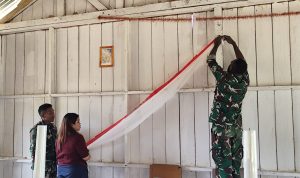 Pos Tarup Yonif 751/VJS Satgas Swasembada Hias Gereja Katolik Kristus Bangkit Sambut Paskah, Jemaat Turut Gotong Royong