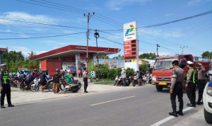 Garudapos.id|Polres Majene – Antisipasi kemacetan akibat antrean panjang kendaraan yang hendak mengisi bahan bakar minyak (BBM), sejumlah personel Polres