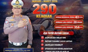 Garudapos.id|Polda Sulbar – Data mencatat, selama periode Januari hingga Maret 2026, telah terjadi sebanyak 290 kasus kecelakaan lalu lintas